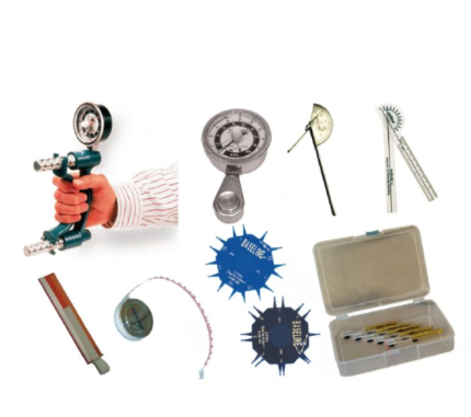 Jamar手功能評估箱八件套,包括:Jamar®數(shù)字200磅手握力計, Jamar® 30磅機械捏力計,小關節(jié)測角儀, 6英寸手指測角儀,卷尺,手指周長計, 5件套單絲測試, Discrim -A- Gon® 兩點辨識覺測試盤。